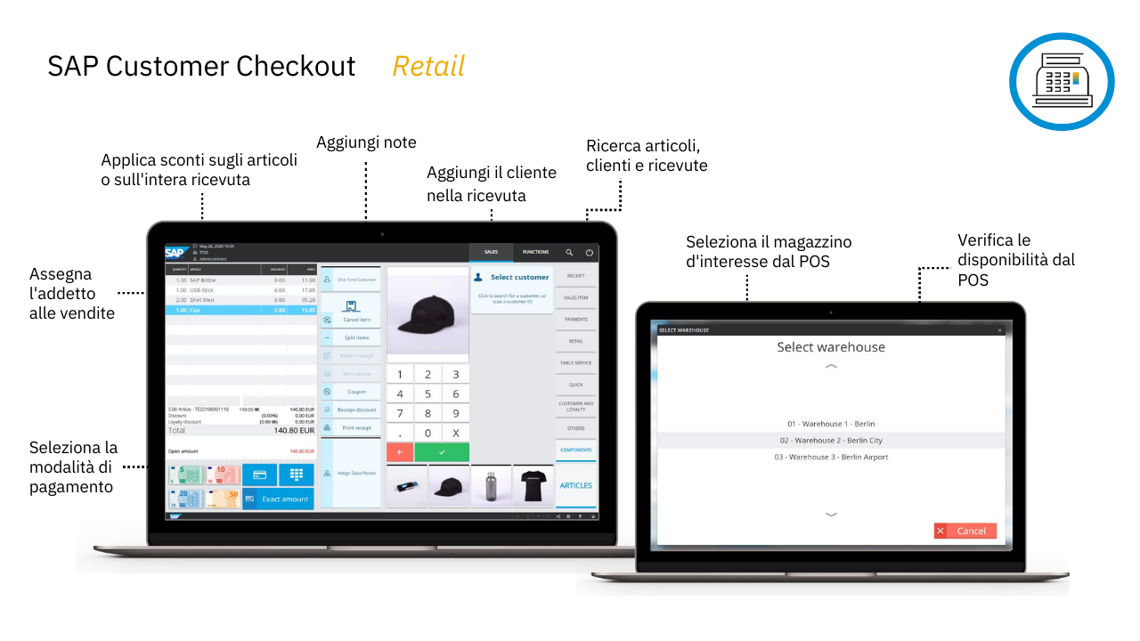 Sì. SAP Customer CheckOut ha un’interfaccia molto intuitiva, per un utilizzo rapido, immediato e frequente. Puoi creare numerosi profili utenti per personalizzare il servizio a seconda dei ruoli in negozio.